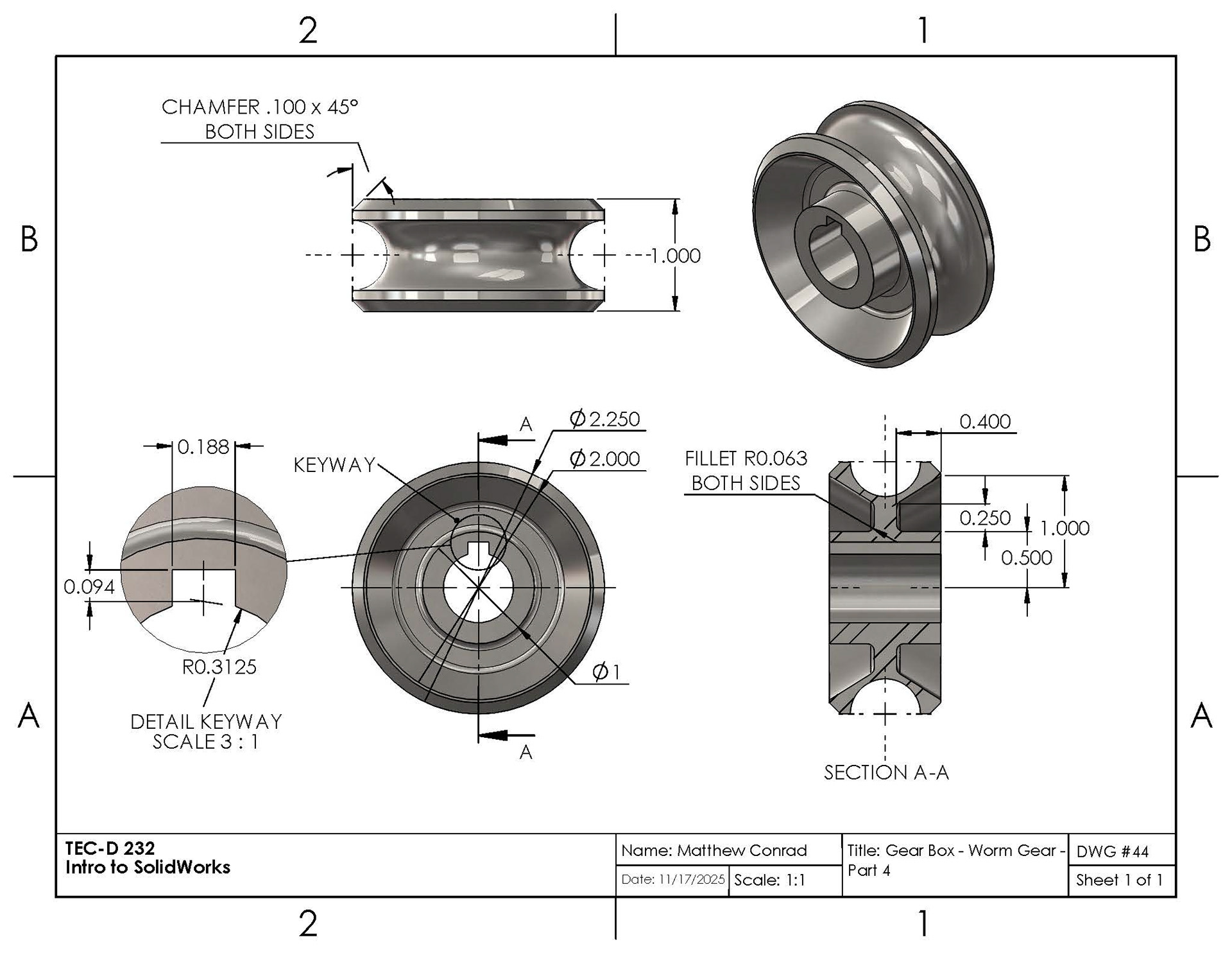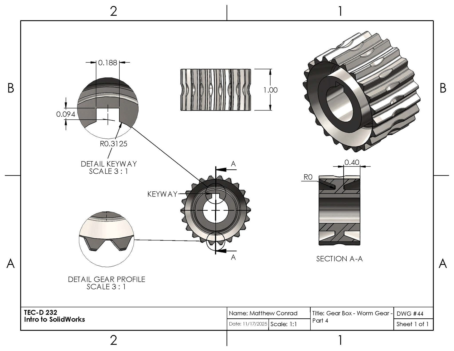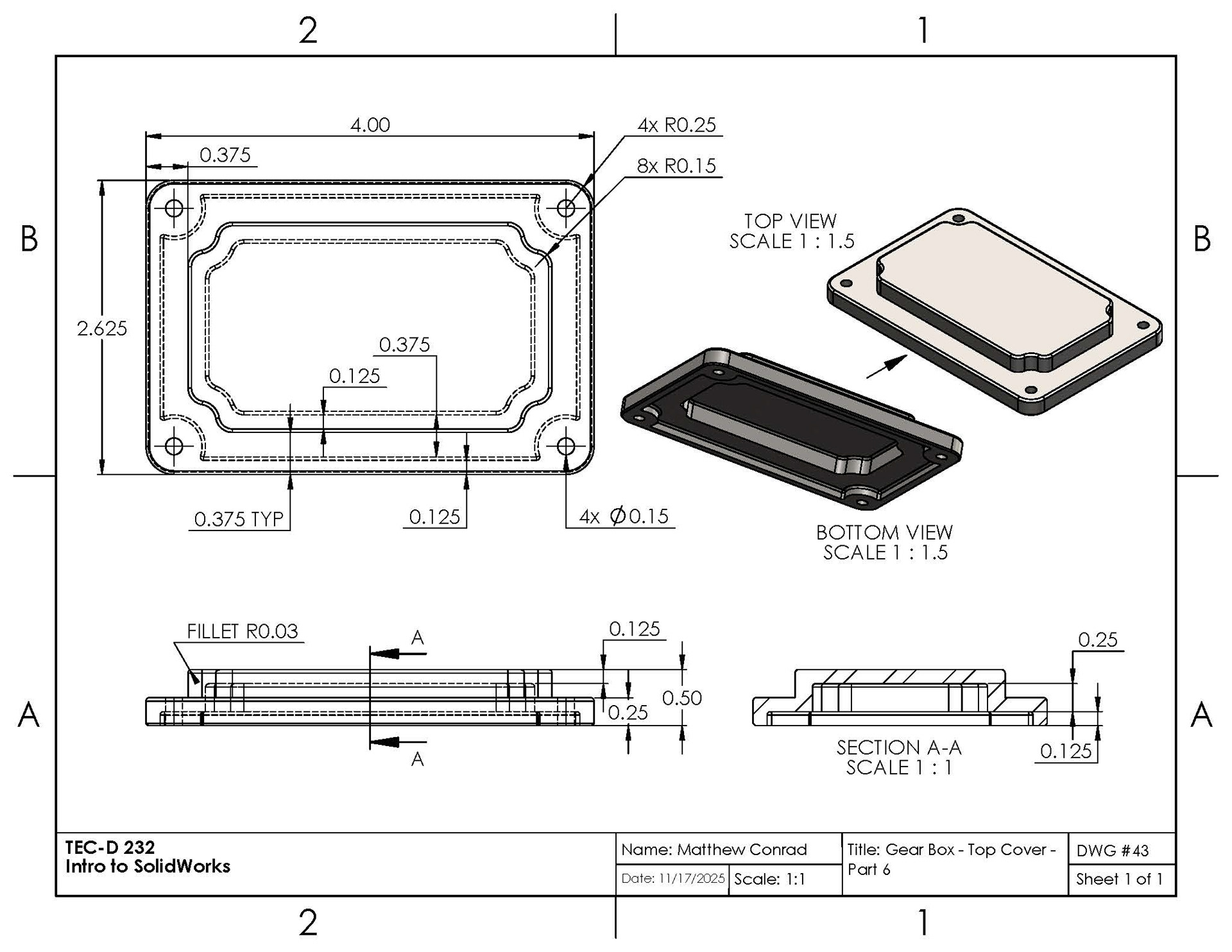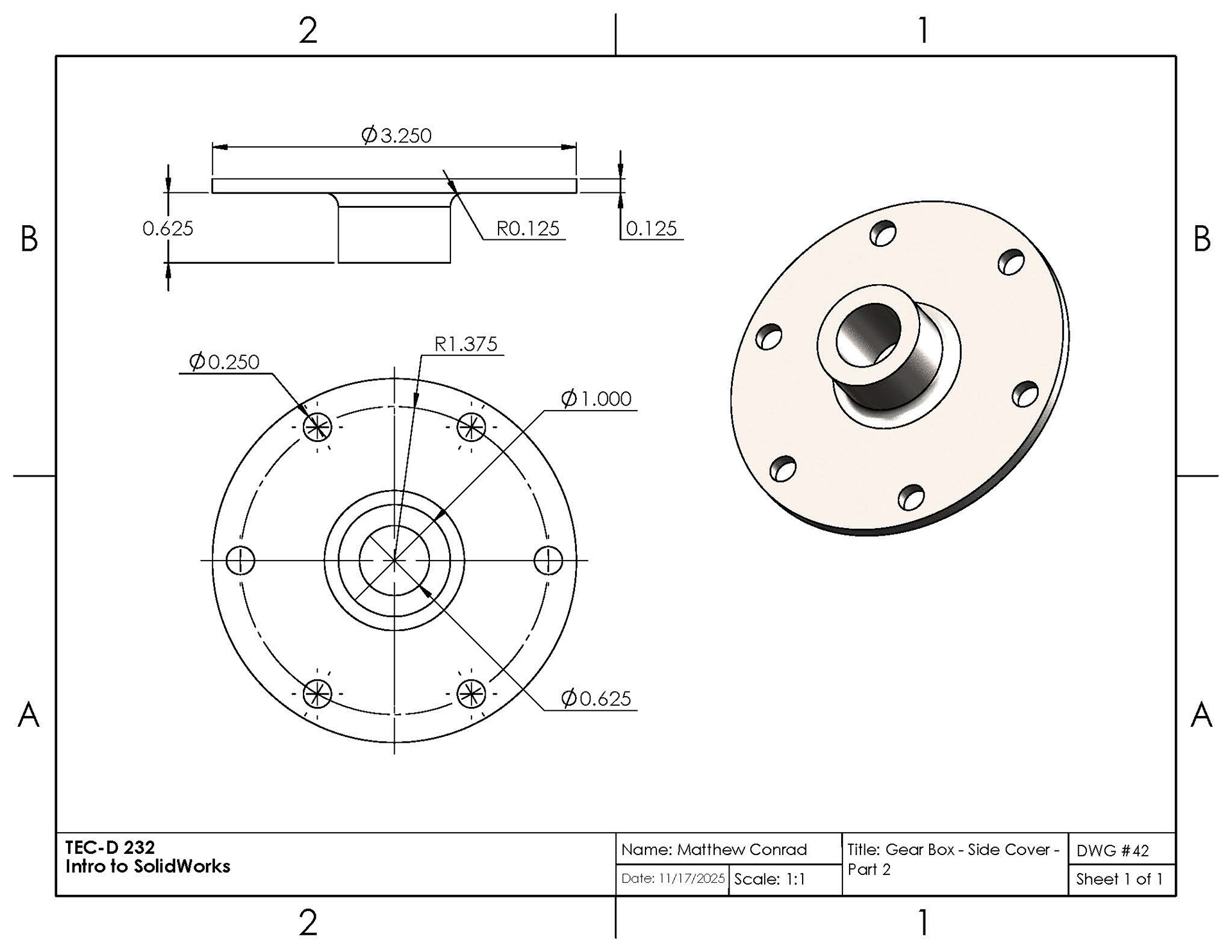In this final project in the Introduction to SolidWorks course at Olympic College in Bremerton, WA, we had to create a gear reducer box comprised of ten different parts. Gear reducers, or speed reducers, are mechanical devices that decelerate power transmission from a motor to machinery.