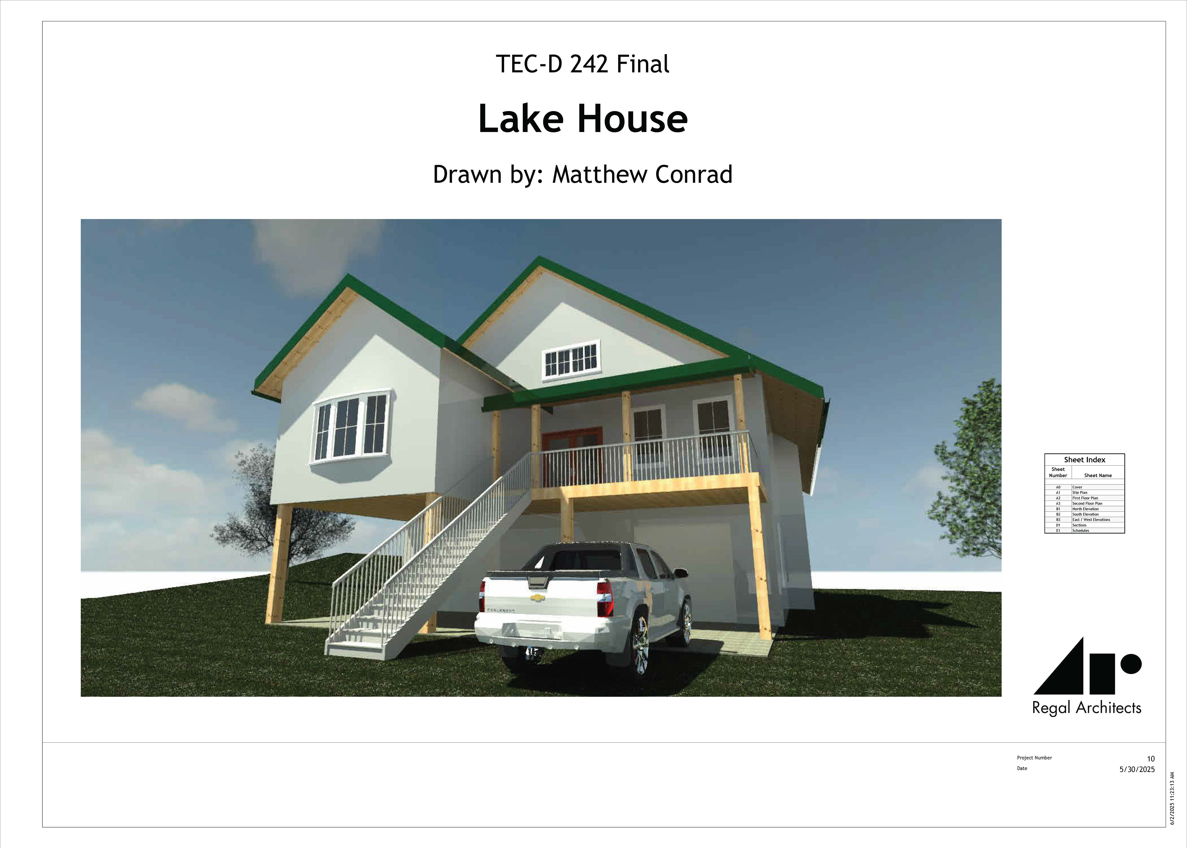 Plans for a lake house, created using the Autodesk program Revit.